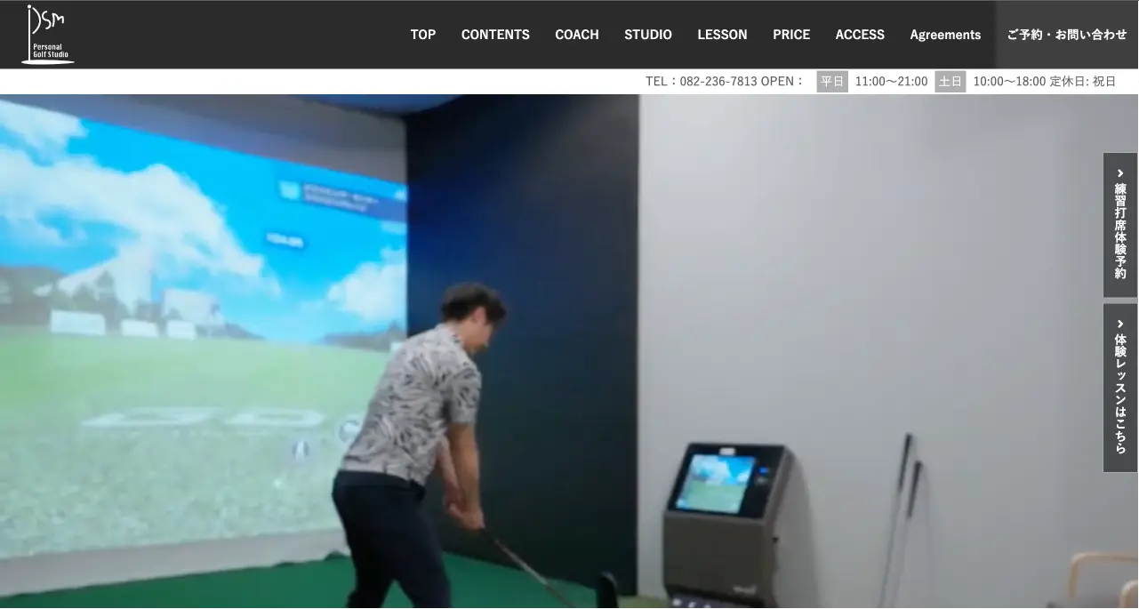 GOLF SWING LABORATORYは広島県で営業するインドゴルフ練習場です。24時間いつでも利用可能で、PCやスマートフォンから予約ができます。完全会員制であり、個室無人練習場として運営されています。練習場内では、正面や後方からのスイング動画、インパクト超スロー動画(1/1500コマ、横と真上から)、計測データ、そして打球のシミュレート動画が前方画面に評価されます。これにより、自身のゴルフスイングをより詳細に分析し、改善することが可能です。