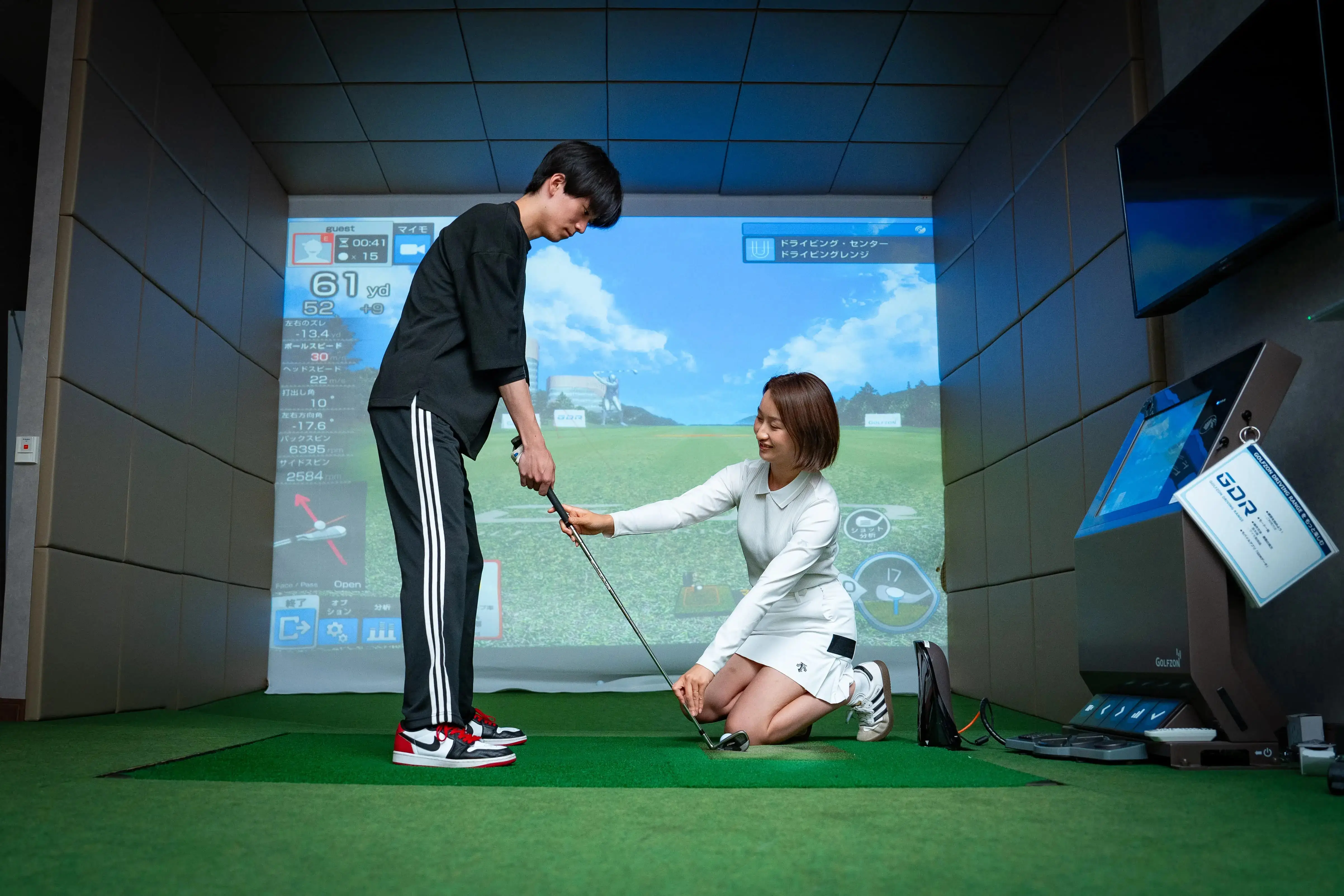 メンズとレディース向けの貸しクラブ・貸しシューズを用意しており、初心者から上級者まで幅広いレベルのプレイヤーに対応しています。予約制で待ち時間がなく、高性能シミュレーターとスイングモーションカメラを備えています。