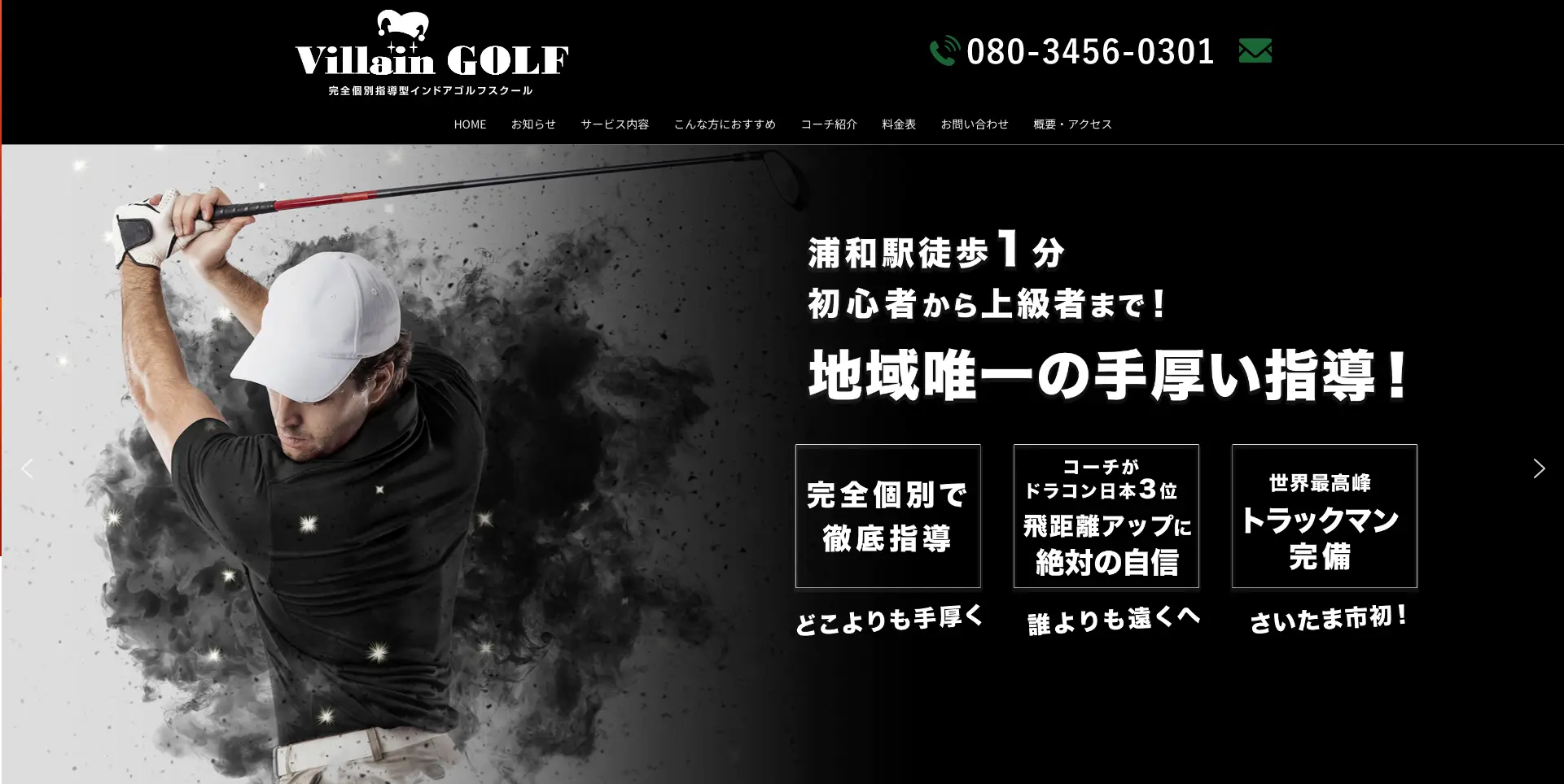 Villain GOLF浦和は、浦和駅からわずか徒歩1分の場所にある完全個別指導型のインドアゴルフスクールです。完全マンツーマンの指導が行われ、初心者の方でも安心してゴルフを始めることができます。打席は1つのみで個室になっており、周囲を気にせずにレッスンに集中できる環境が整っています。